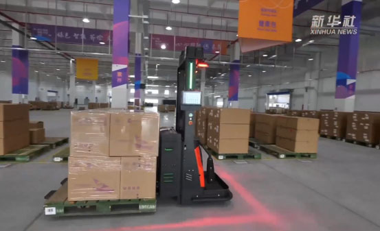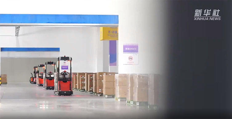 凭借出色的自动搬运以及高效作业能力,中力搬马机器人再次出镜,并且直面新华社记者现场挑战,赢得胜利。