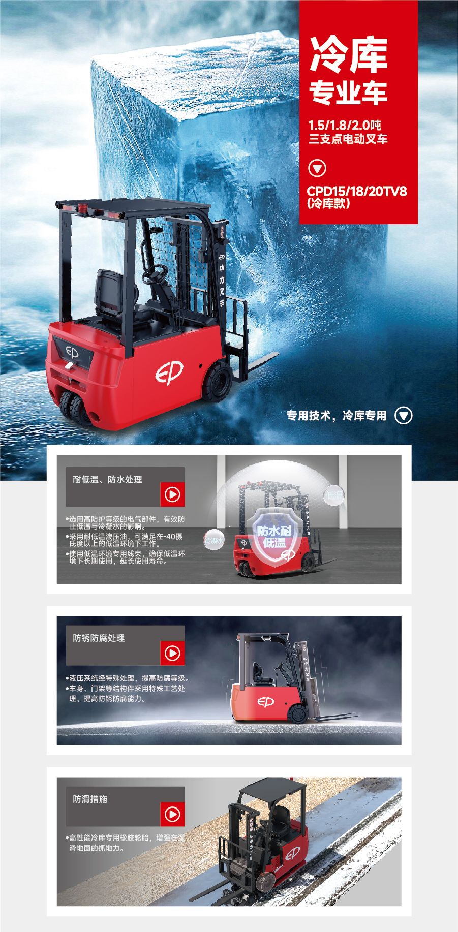 CPD15/18/20TV8(冷库锂电款)1.5/1.8/2.0吨电动叉车(三支点)