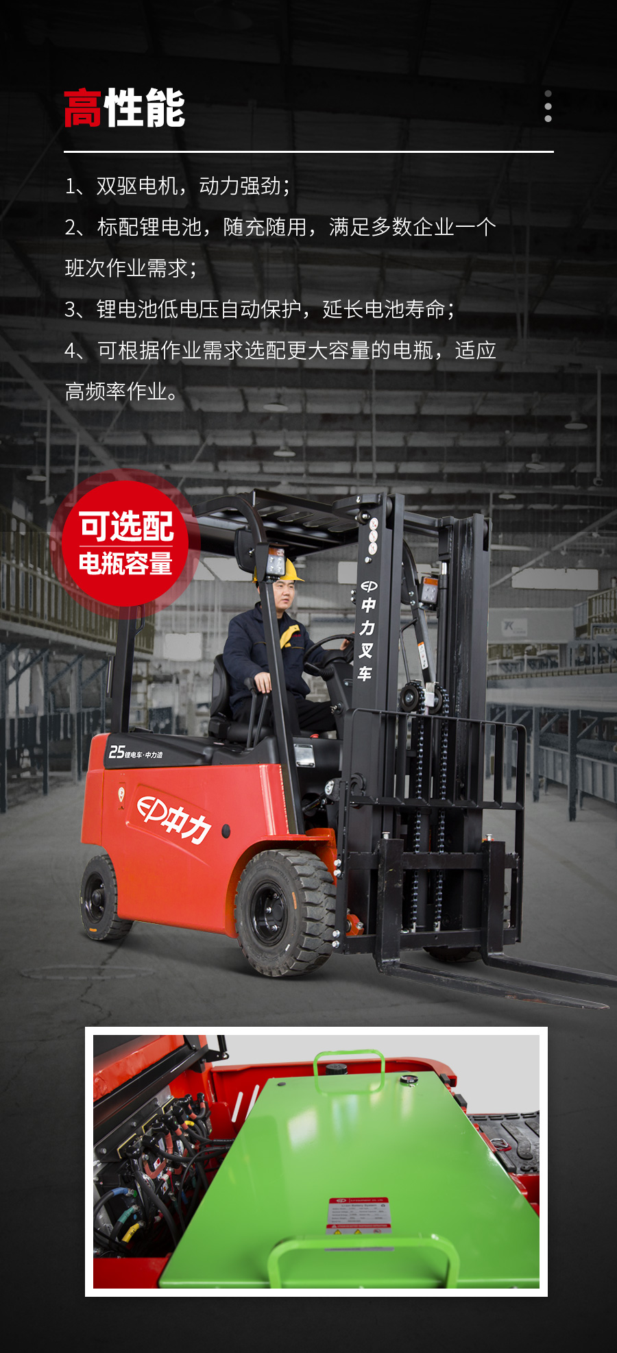 CPD25L2(S)2.5吨电动平衡重叉车(锂电)