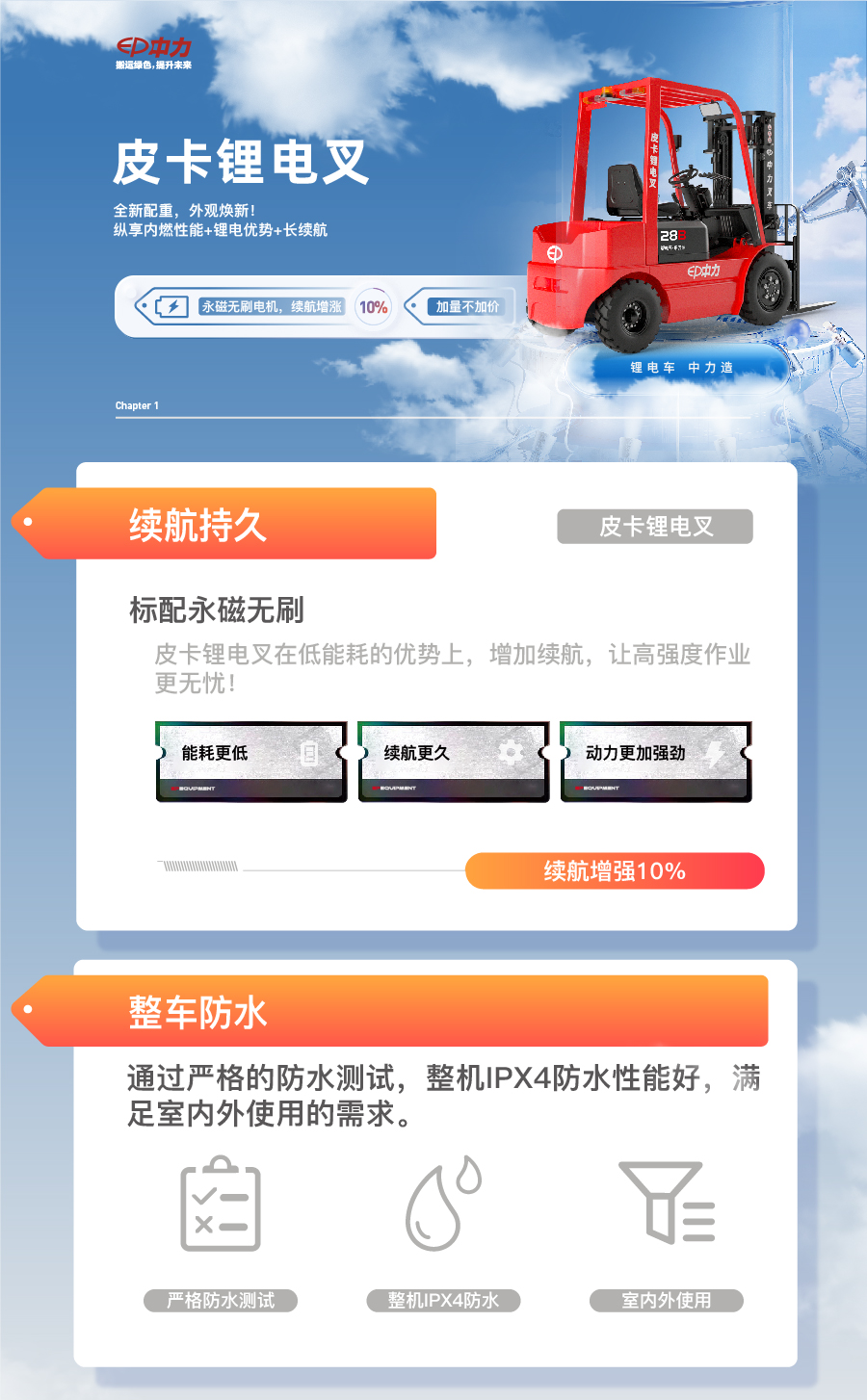 产品卖点超强载重,超大力;整车IPX4防水,室内外可用;永磁无刷标配,续航猛升;完全通过50%倾翻测试,超稳定;