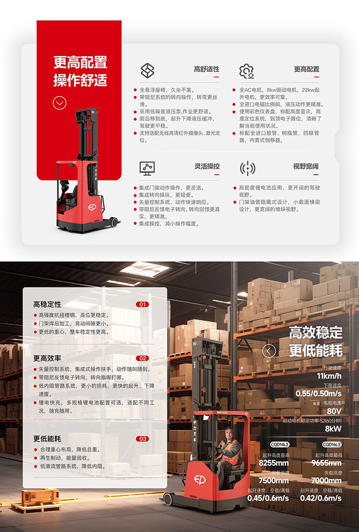 产品卖点更高配置,操作舒适;高效稳定,更低能耗;满足客户多元需求;支持选配多规格门架;